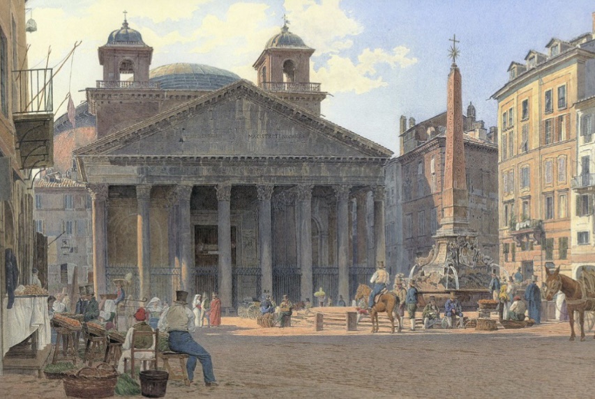 Originalmente el l día de Todos los Santos fue instituido el día 13 de mayo por el Papa Bonifacio IV en el año 609, para honrar a los protectores de la Iglesia y consagró ese día en Roma el antiguo templo del panteón romano (en latín pan= todos y teos=dioses) que el Emperador Agripa había erigido para concentrar a todos los dioses paganos romanos en un solo templo. La llamó la Iglesia de Santa María de los Mártires (también conocida como Santa María la Redonda por su planta circular), les adjunto una pintura de Jakob Alt de 1836 en donde se aprecian las torres de iglesia que le fueron agregadas para darle un aspecto más políticamente correcto, dichas torres fueron derruidas y ya no forman parte del Panteón, un monumento muy visitado en Roma.