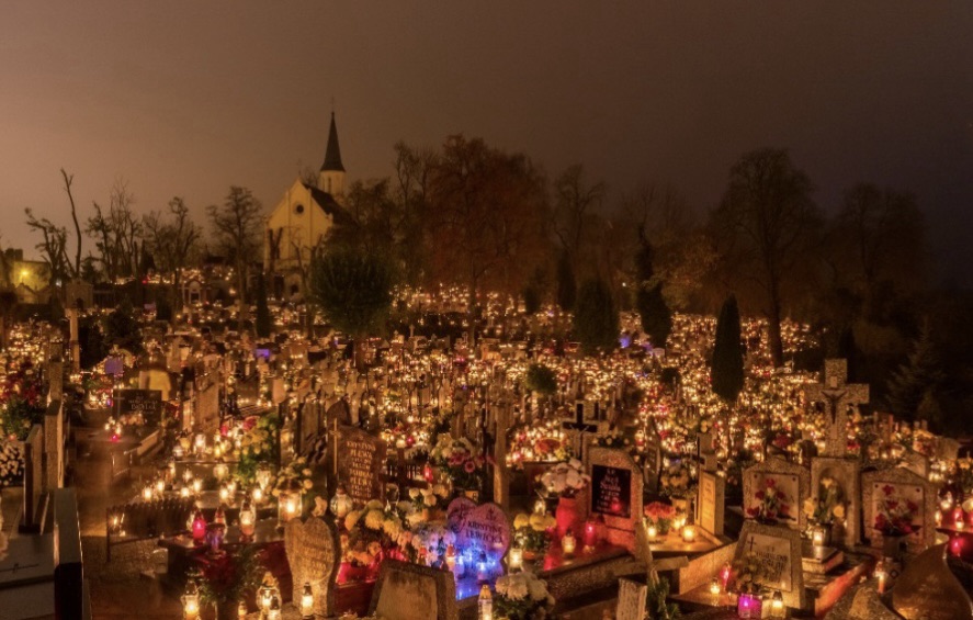 La siguiente fotografía es la Celebración de Todos los Santos, cementerio de la Santa Cruz, Gniezno, Polonia. La fotografía es de Diego Delso y cualquier semejanza con un cementerio en Michoacán es pura coincidencia: